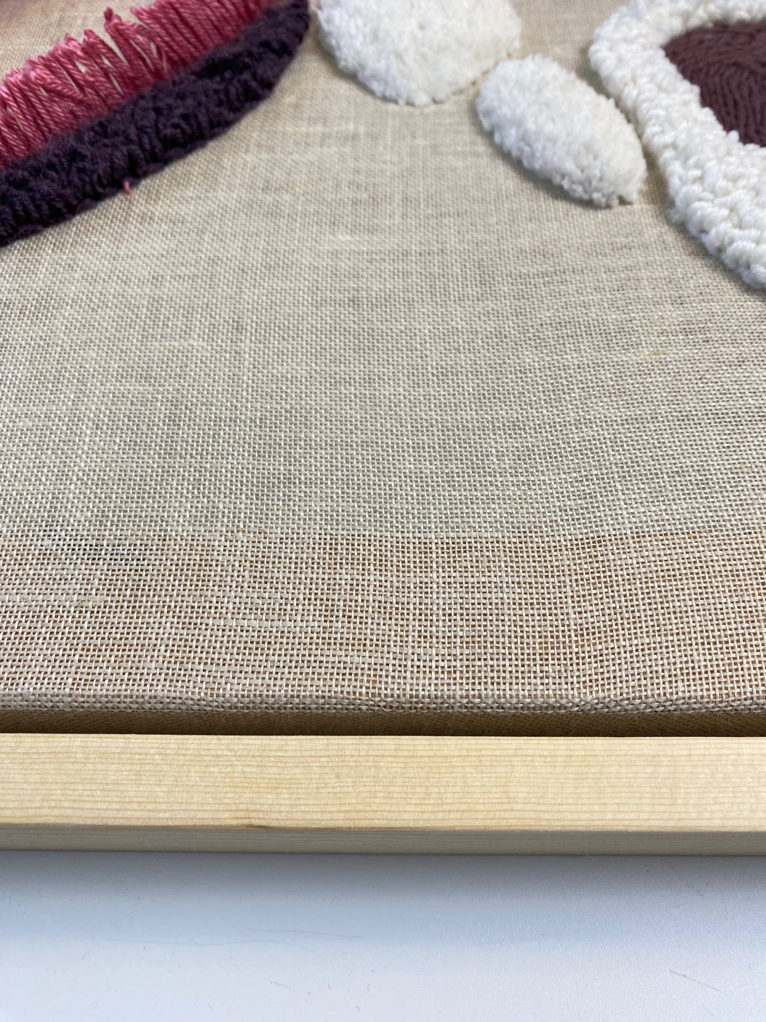 Merino wool, cotton, linen cloth mounted on a wooden frame.