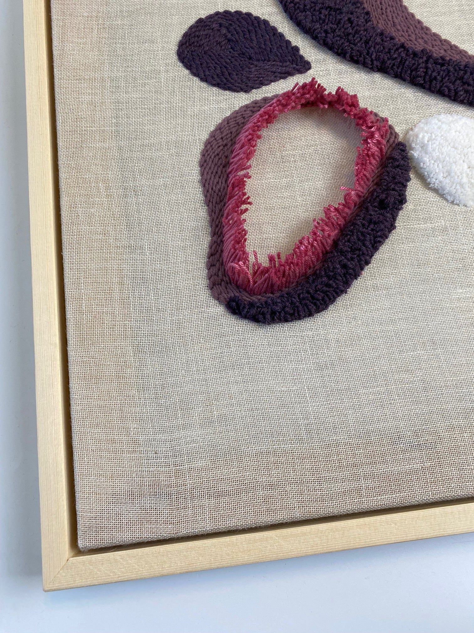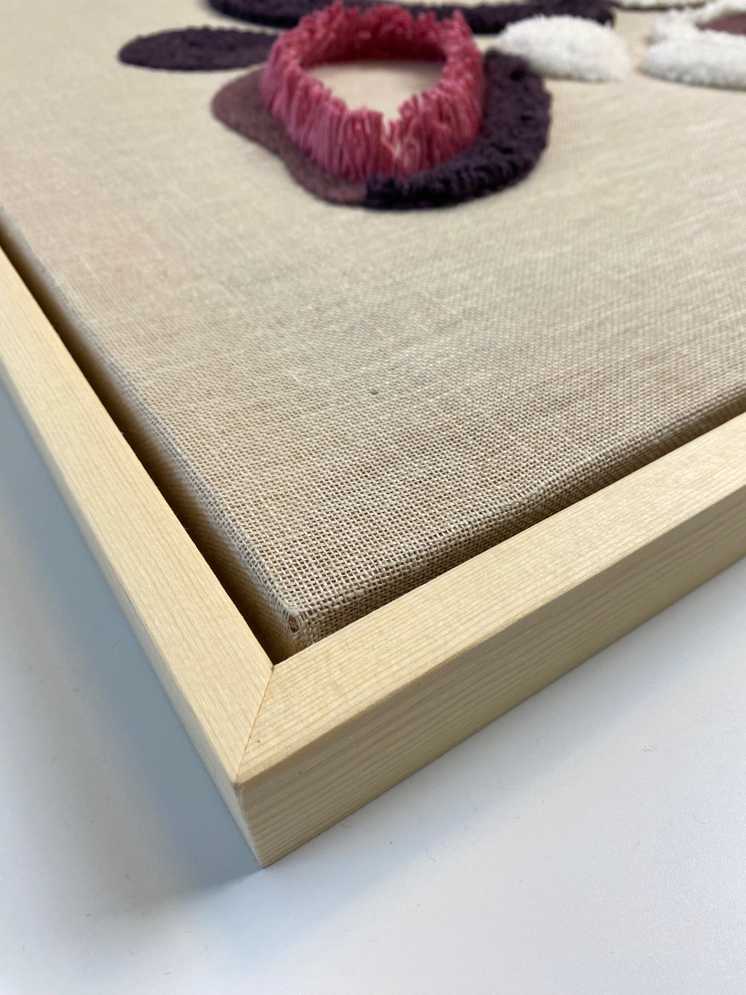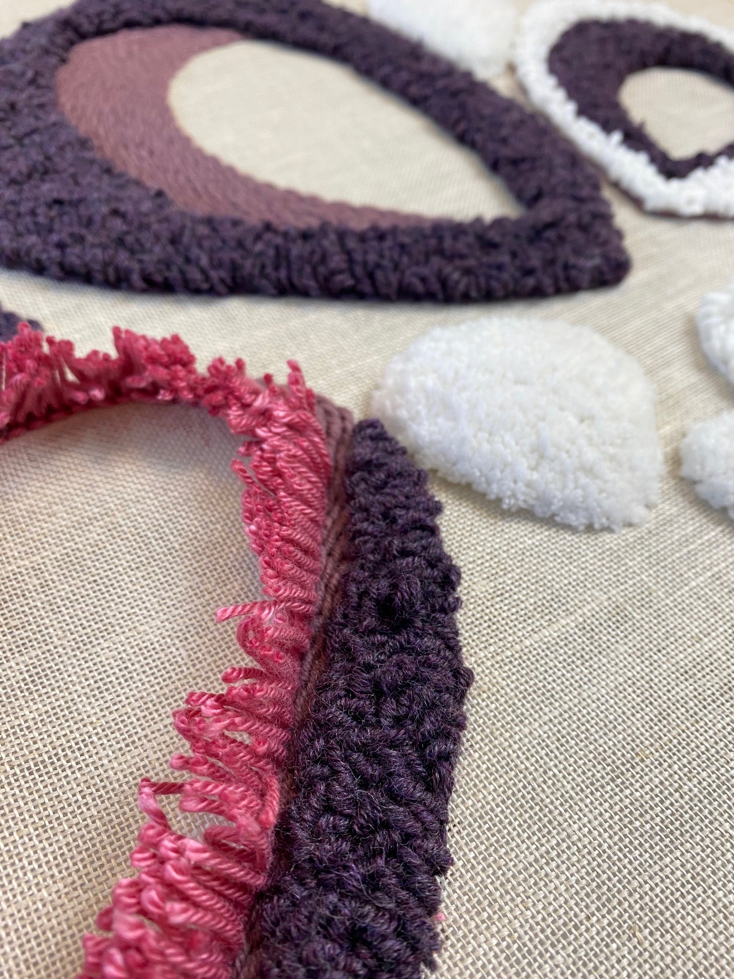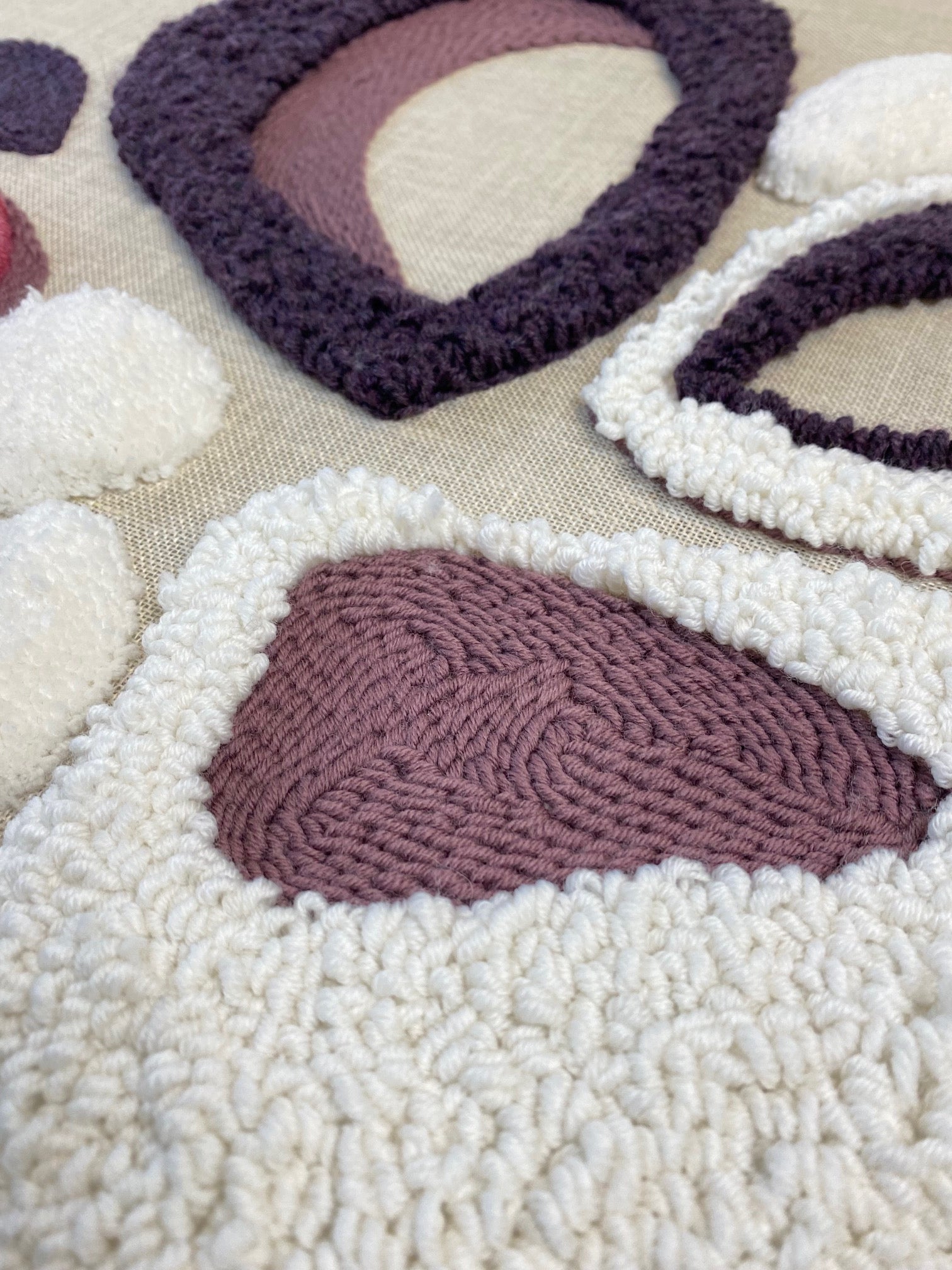 Abstract floral punch needle artwork.